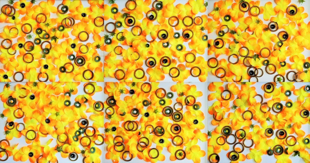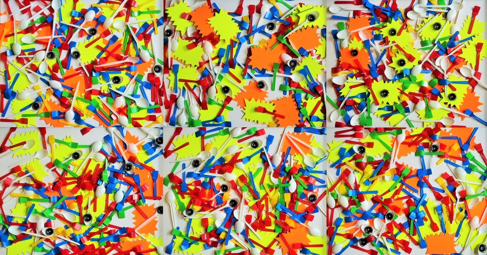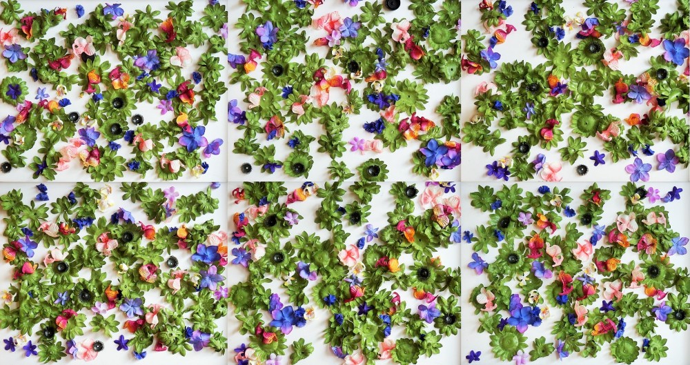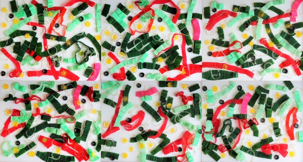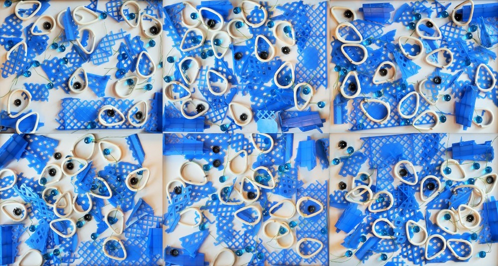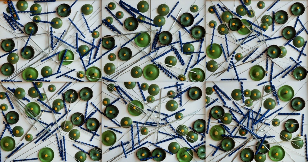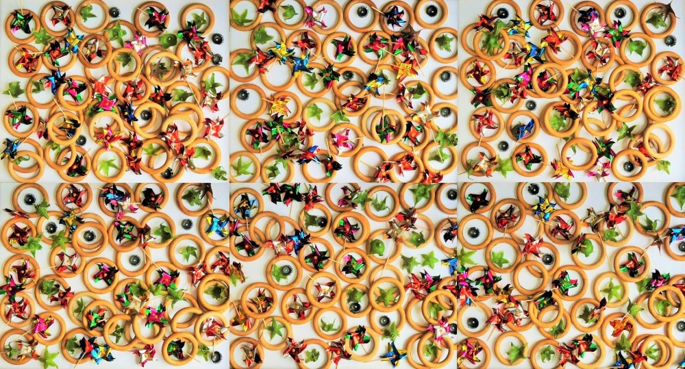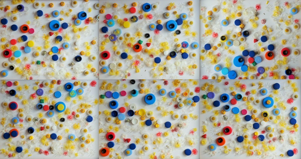 Installation évolutive crée en binôme par Catherine Poulain et Yabon Paname en été 2013 – 2014. Installation réalisée uniquement avec des objets usuels de récupération en plastique transportés, démontés, triés, lavés, percés, découpés et assemblés en suspension pour leur donner une seconde vie et créer un espace de poésie et de paix tout en ayant conscience de la réalité du problème de la gestion des déchets qui envahissent la nature et sont extrêmement longs à se dégrader. C’est l’évocation de la mémoire de faits violents vécus, observés et exprimés au second degré. Des morceaux de jouets d’enfants qui en font partie évoquent aussi des souvenirs encore présents à chaque visiteur qui la découvre.