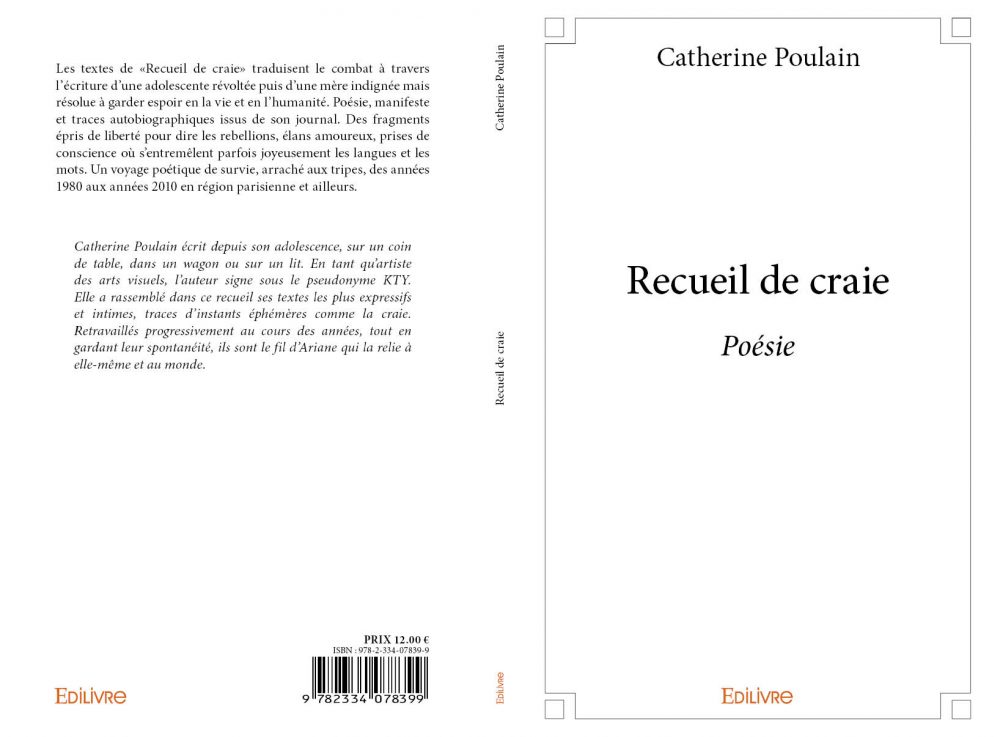 Catherine Poulain écrit depuis son adolescence, sur un coin de table, dans un wagon ou sur un lit. En tant qu’artiste des arts visuels, l’auteur signe sous le pseudonyme KTY. Elle a rassemblé dans ce recueil ses textes les plus expressifs et intimes, traces d’instants éphémères comme la craie. Retravaillés progressivement au cours des années, tout en gardant leur spontanéité, ils sont le fil d’Ariane qui la relie à elle-même et au monde.
