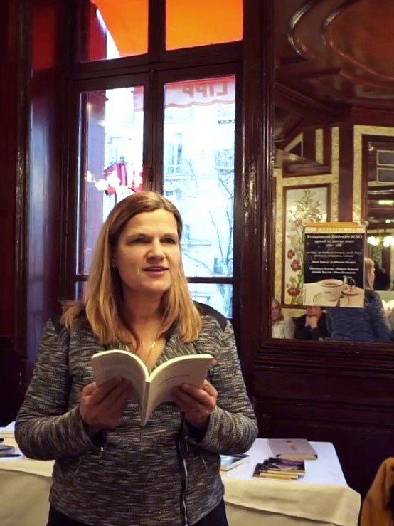Catherine Poulain fait des lectures et performances avec des extraits de Recueil de craie dans des librairies, théâtres et restaurants depuis 2017 à Paris (A Balzac à Rodin, Les déchargeurs, Cénacle du Cygne).